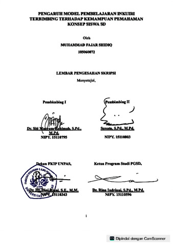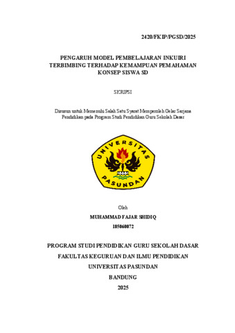 SHIDIQ MUHAMMAD FAJAR, 185060072 (2026) PENGARUH MODEL PEMBELAJARAN INKUIRI TERBIMBING TERHADAP KEMAMPUAN PEMAHAMAN KONSEP SISWA SD. Skripsi(S1) thesis, FKIP UNPAS.