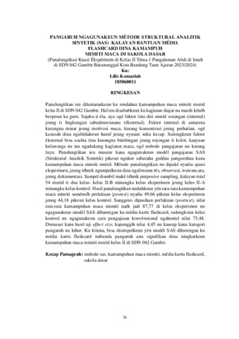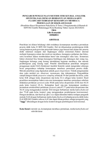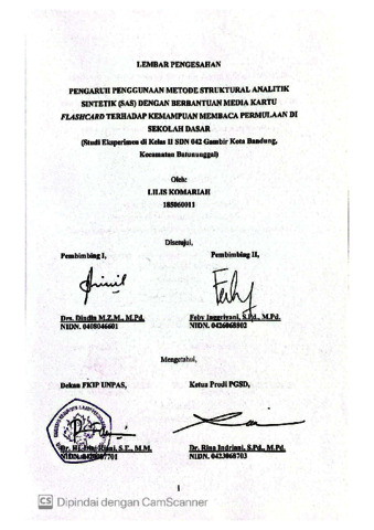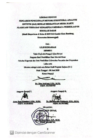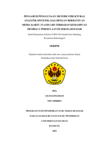 KOMARIAH LILIS, 185060011 (2026) PENGARUH PENGGUNAAN METODE STRUKTURAL ANALITIK SINTETIK (SAS) DENGAN BERBANTUAN MEDIA KARTU FLASHCARD TERHADAP KEMAMPUAN MEMBACA PERMULAAN DI SEKOLAH DASAR (Studi Eksperimen di Kelas II SDN 042 Gambir Kota Bandung, Kecamatan Batununggal). Skripsi(S1) thesis, FKIP UNPAS.