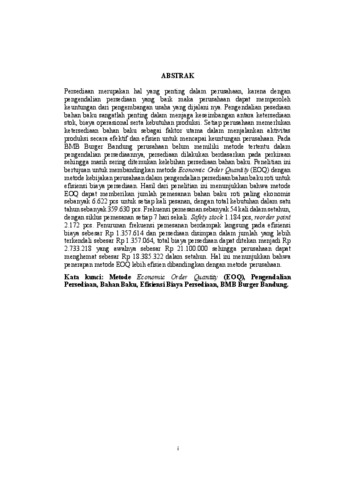Ida Komalasari, 214010201 and Dr. Atty Tri Juniaarti, SE.,MSi, Pembimbing (2026) PENERAPAN METODE ECONOMIC ORDER QUANTITY (EOQ) DALAM PENGENDALIAN PERSEDIAAN BAHAN BAKU UNTUK EFISIENSI BIAYA PERSEDIAAN DI BMB BURGER BANDUNG. Skripsi(S1) thesis, Universitas Pasundan Bandung.