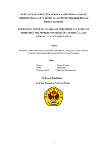 Wiguna, Ervan (2026) KEKUATAN MENGIKAT PERJANJIAN KAWIN SEBAGAI DASAR PERLINDUNGAN HARTA BENDA SUAMI ISTRI TERHADAP TINDAK PIDANA KORUPSI. Thesis(S2) thesis, UNIVERSITAS PASUNDAN.