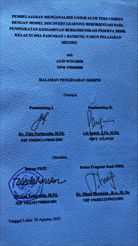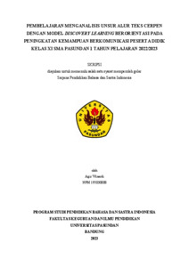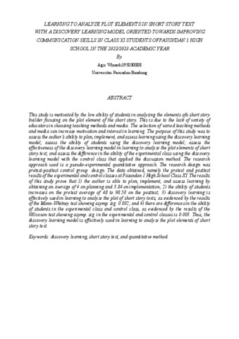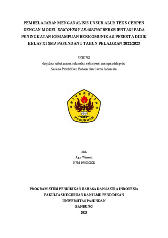 Winardi Agis, 195030008 (2026) PEMBELAJARAN MENGANALISIS UNSUR ALUR TEKS CERPEN DENGAN MODEL DISCOVERY LEARNING BERORIENTASI PADA PENINGKATAN KEMAMPUAN BERKOMUNIKASI PESERTA DIDIK KELAS XI SMA PASUNDAN 1 TAHUN PELAJARAN 2022/2023. Skripsi(S1) thesis, FKIP UNPAS.