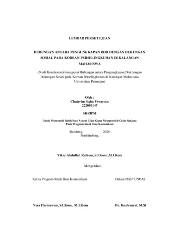 Vevayosa, Chaterine Egha (2026) HUBUNGAN ANTARA PENGUNGKAPAN DIRI DENGAN DUKUNGAN SOSIAL PADA KORBAN PERSELINGKUHAN DI KALANGAN MAHASISWA. Skripsi(S1) thesis, FISIP UNPAS.
