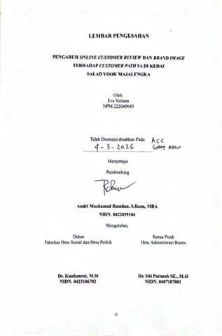 Yuliana, Eva (2026) PENGARUH ONLINE CUSTOMER REVIEW DAN BRAND IMAGE TERHADAP CUSTOMER PATH 5A DI KEDAI SALAD YOOK MAJALENGKA. Skripsi(S1) thesis, FISIP UNPAS.
