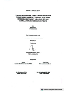 Hafid, Nadia (2026) PENGARUH DAYA TARIK KONTEN MEDIA SOSIAL DAN INFLUENCER MARKETING TERHADAP KEPUTUSAN PEMBELIAN KONSUMEN PADA AYAM GEPREK SAMBALADO PADANG DI KOTA BANDUNG. Skripsi(S1) thesis, FISIP UNPAS.