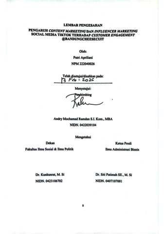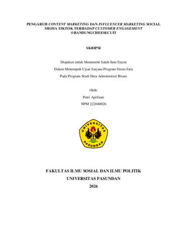 Apriliani, Putri (2026) PENGARUH CONTENT MARKETING DAN INFLUENCER MARKETING SOCIAL MEDIA TIKTOK TERHADAP CUSTOMER ENGAGEMENT @BANDUNGCHEESECUIT. Skripsi(S1) thesis, FISIP UNPAS.