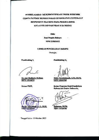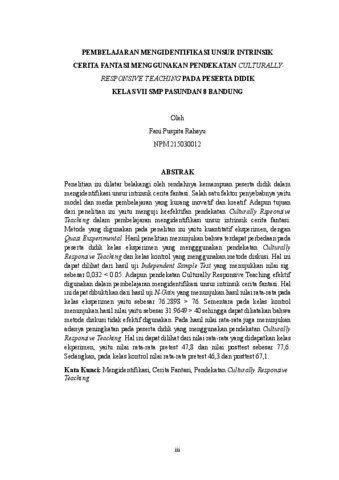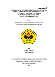 Rahayu Fani Puspita, 215030012 (2026) PEMBELAJARAN MENGIDENTIFIKASI UNSUR INTRINSIK CERITA FANTASI MENGGUNAKAN PENDEKATAN CULTURALLY RESPONSIVE TEACHING PADA PESERTA DIDIK KELAS VII SMP PASUNDAN 8 BANDUNG. Skripsi(S1) thesis, FKIP UNPAS.