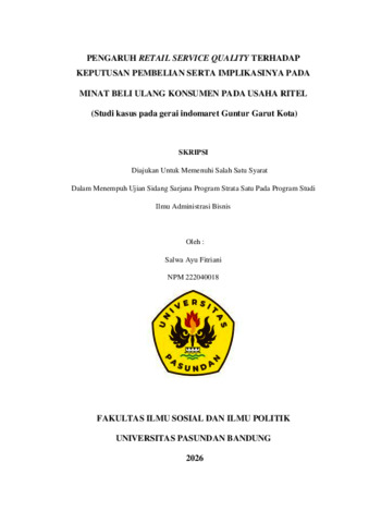FITRIANI, SALWA AYU (2026) PENGARUH RETAIL SERVICE QUALITY TERHADAP KEPUTUSAN PEMBELIAN SERTA IMPLIKASINYA PADA BELI ULANG KONSUMEN PADA USAHA RITEL (Studi kasus pada gerai indomaret Guntur Garut Kota). Skripsi(S1) thesis, FISIP UNPAS.
