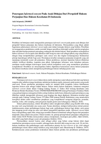 Penerapan Informed consent Pada Anak Ditinjau Dari Perspektif Hukum Perjanjian Dan Hukum Kesehatan Di Indonesia