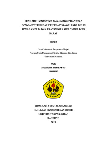 Muhammad Aushaf Nibras, 214010097 and Dr. H.Rohmat Sarman, SE.,MSi, Pembimbing (2026) PENGARUH EMPLOYEE ENGAGEMENT DAN SELF EFFICACY TERHADAP KINERJA PEGAWAI PADA DINAS TENAGA KERJA DAN TRANSMIGRASI PROVINSI JAWA BARAT. Skripsi(S1) thesis, Universitas Pasundan Bandung.