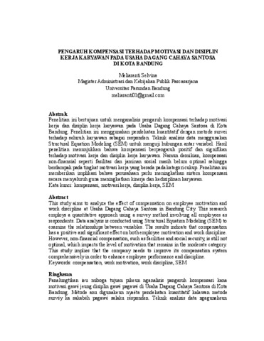 Selvina, Meliaranti (2026) PENGARUH KOMPENSASI TERHADAP MOTIVASI DAN DISIPLIN KERJA KARYAWAN PADA USAHA DAGANG CAHAYA SANTOSA DI KOTA BANDUNG. Thesis(S2) thesis, UNIVERSITAS PASUNDAN.