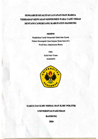 Yoana, Syifa Putri (2026) Pengaruh Kualitas Layanan Dan Harga Terhadap Kepuasan Konsumen Pada Café Teras Sentani Cangkuang Kabupaten Bandung. Skripsi(S1) thesis, FISIP UNPAS.